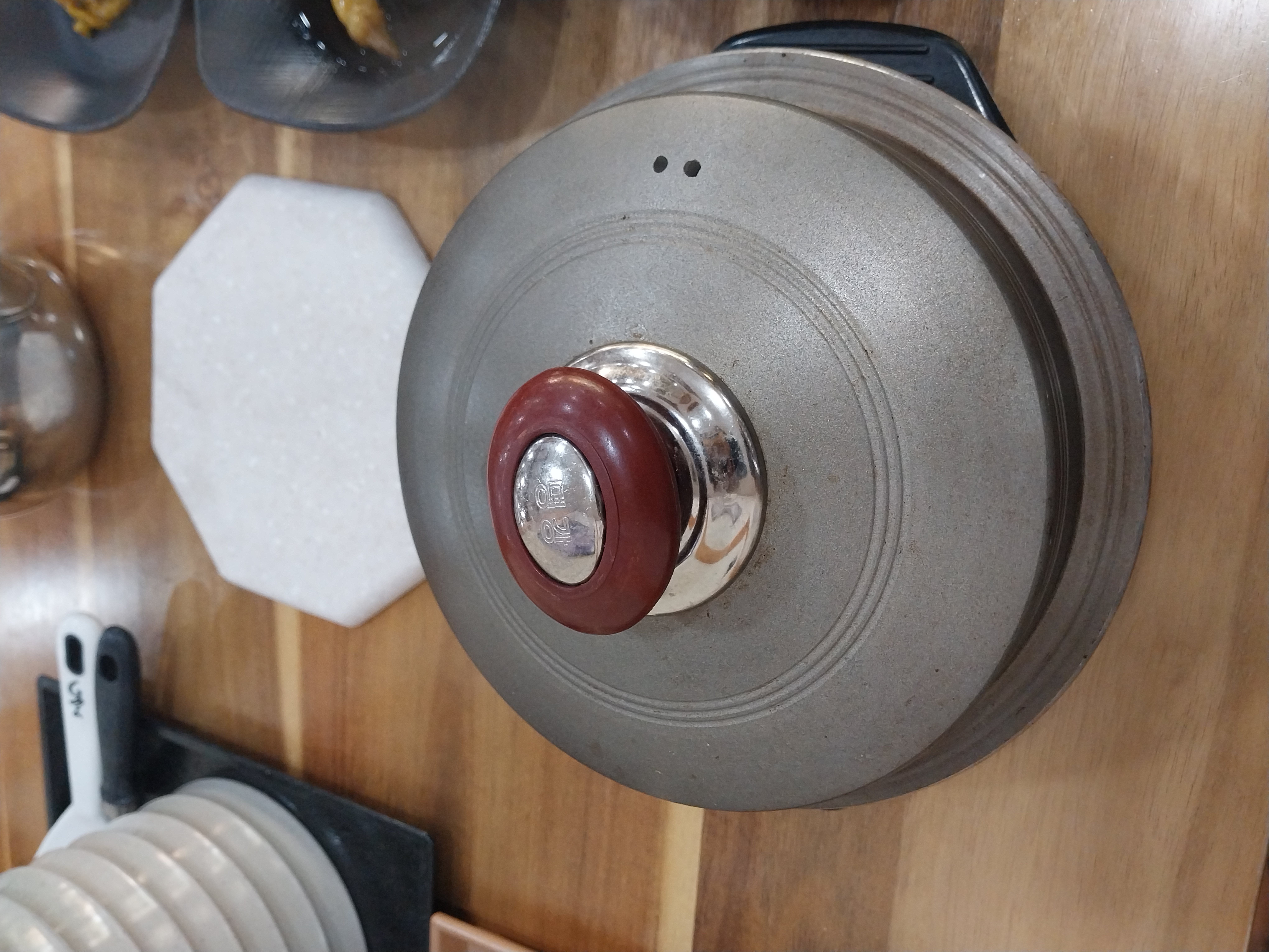 밥공기에 솥밥을 따로 담아 넣고 뜨거운 물을 부어 넣고 누룽지 밥을 먹으려고 솥뚜껑을 덮어 놨어요!