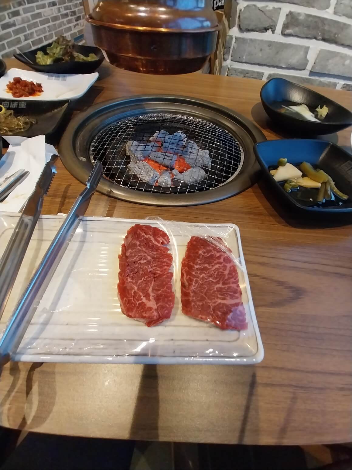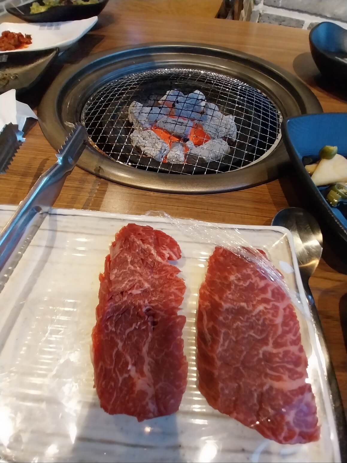 내가 직접 보고 주문한 신선한 소고기를 직원이 처음에는 구워줍니다.