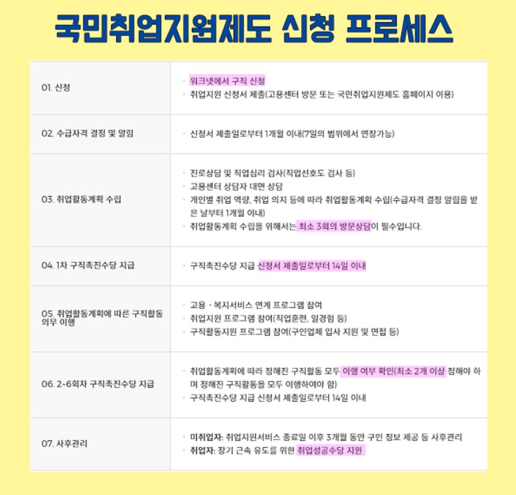 또는 , '워크넷사이트'에서 구직 신청 후 활동계획 수립하고 여기에 따라 이행만 잘하면 됩니다.