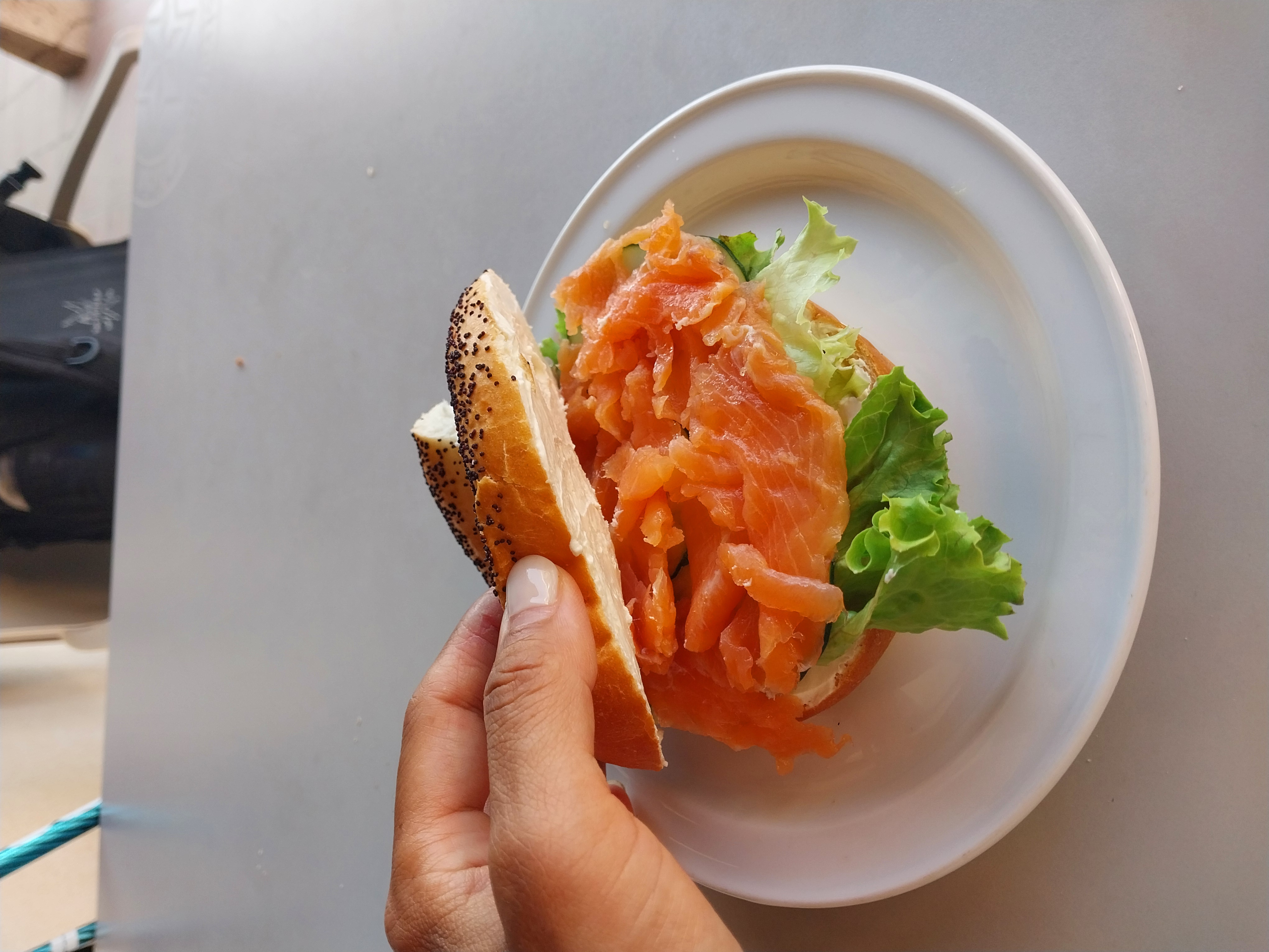 *숙성연어 + 치즈 베이글 샌드위치 + 맥주 🍺