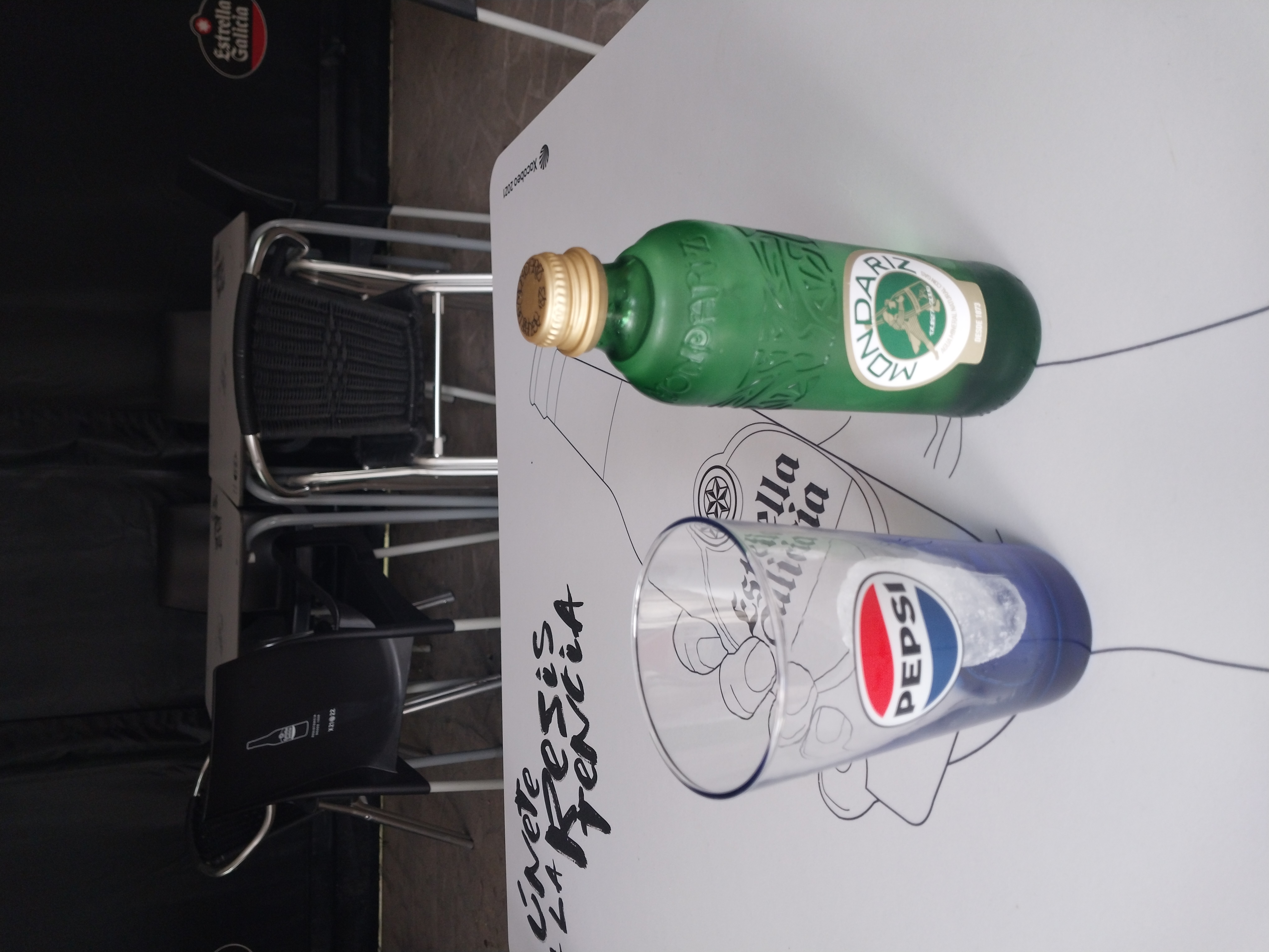 순례길 가는 길 카페에서 스파클링 워터 한잔 시켰어요. 사람들이 워낙 많아서 카페 한번 들러서 뭘 주문하기가 쉽지 않네요.