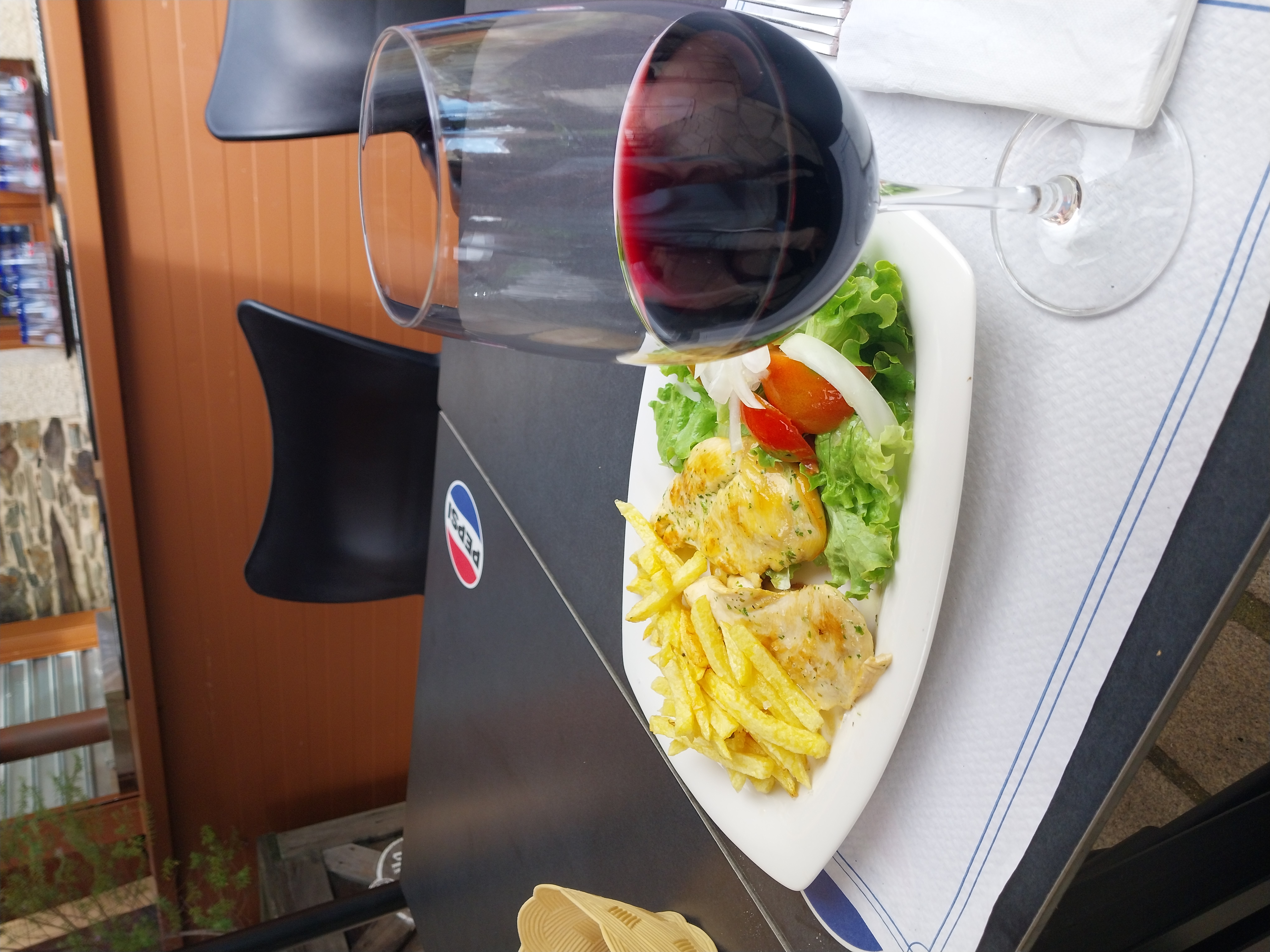 숙소 옆에 레스토랑에서 저녁 식사로 치킨과 포테이토 와 와인 한잔을 시켰어요.