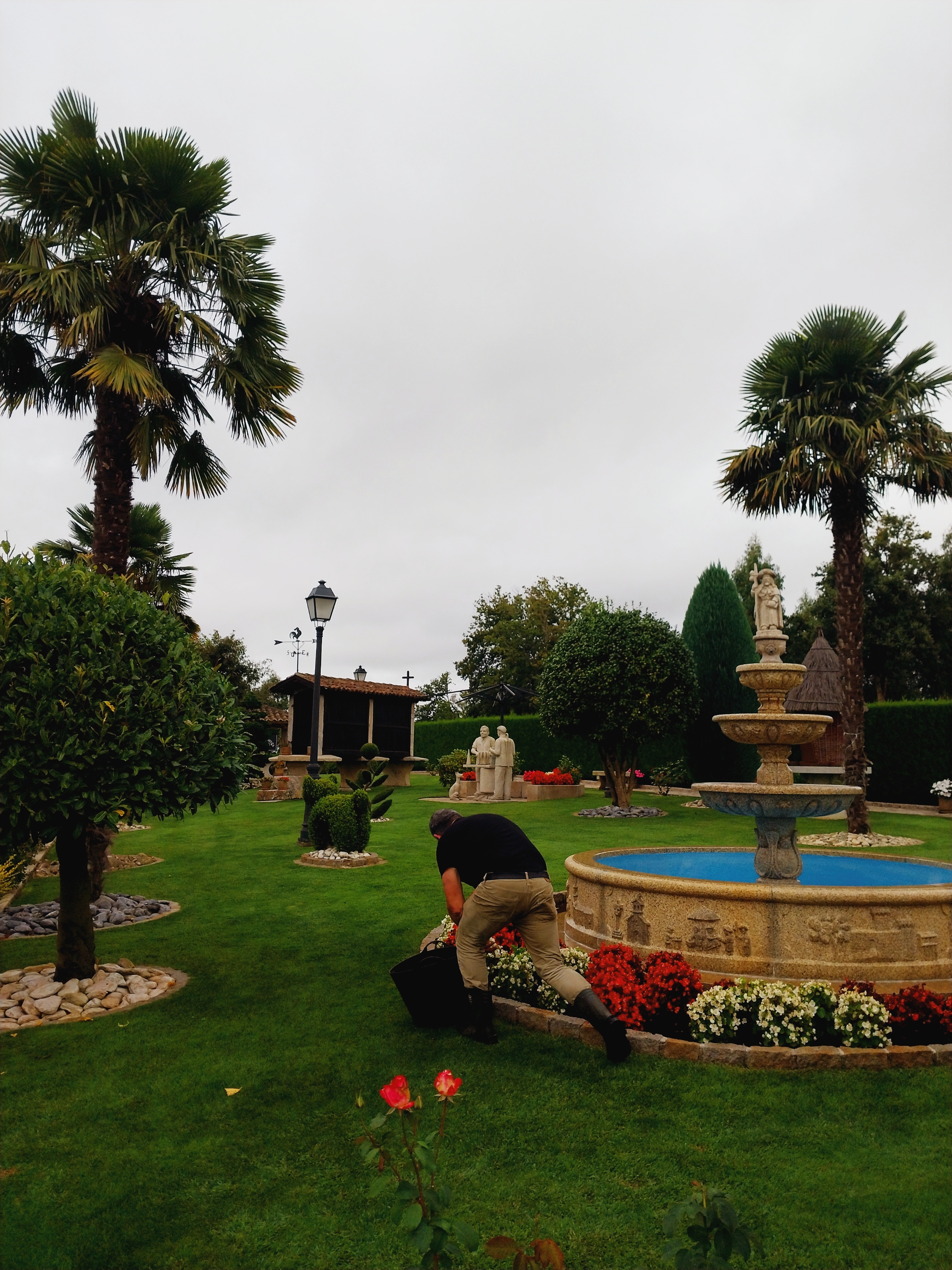 마침 작은 분수 주변에 꽃을 심고 있으셔서 한컷 찰칵 📸