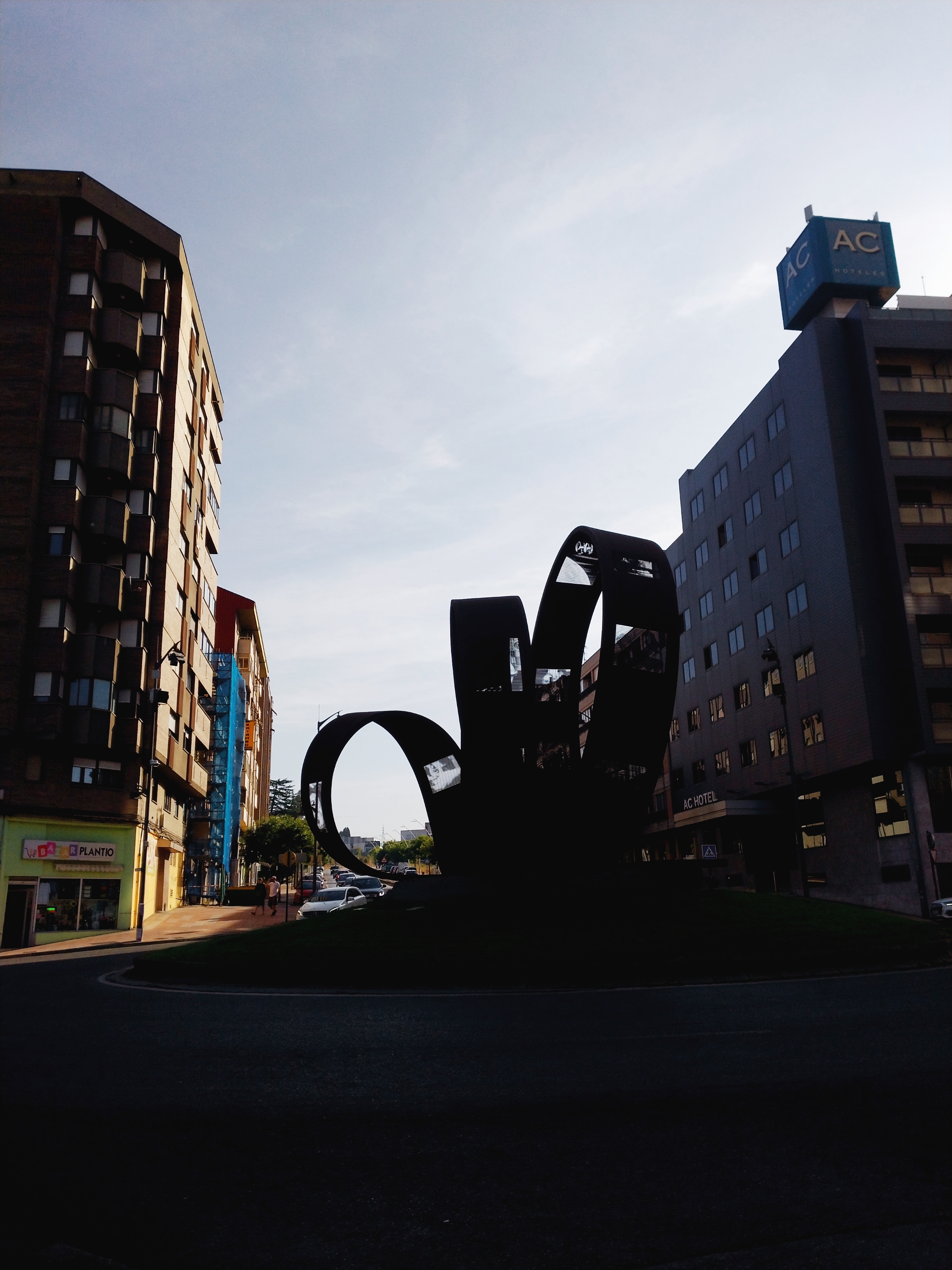스페인은 길거리에 예술 작품 동상들이 많이 설치되어 있어요. 햇볕에 반짝이는 역방향으로 촬영한 거라 잘 안 보였지만 영화 필름사진을 형상화한 작품 이었어요. 남자 배우 말론브란도 만 알겠더라고요 ㅎ