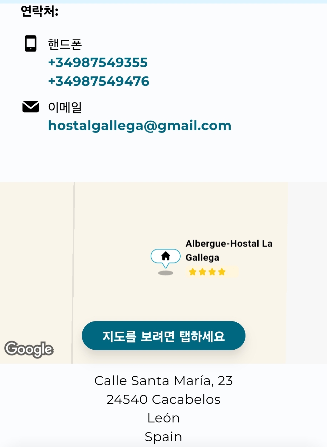 오늘 제가 카카벨로스(Cacabelos) 마을에서 머무를 숙소 정보