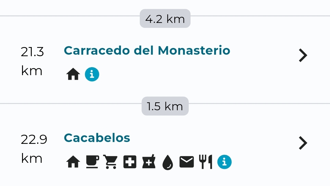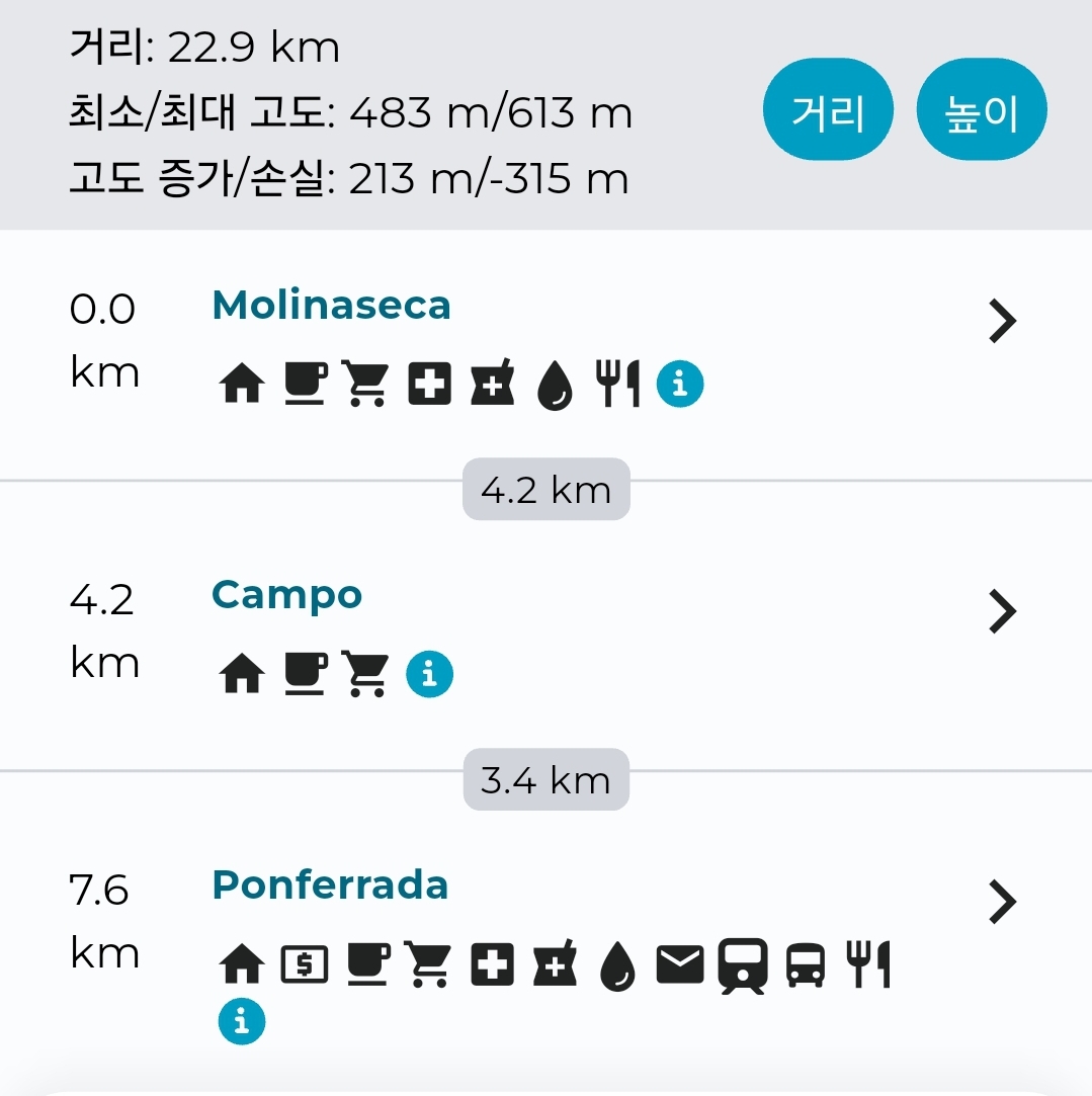 하루에 20km 안팎으로 걷고 있는데 오늘은 조금 더 많이 걸어서 카카벨로스 마을까지 거의 23km를 걸었다.
