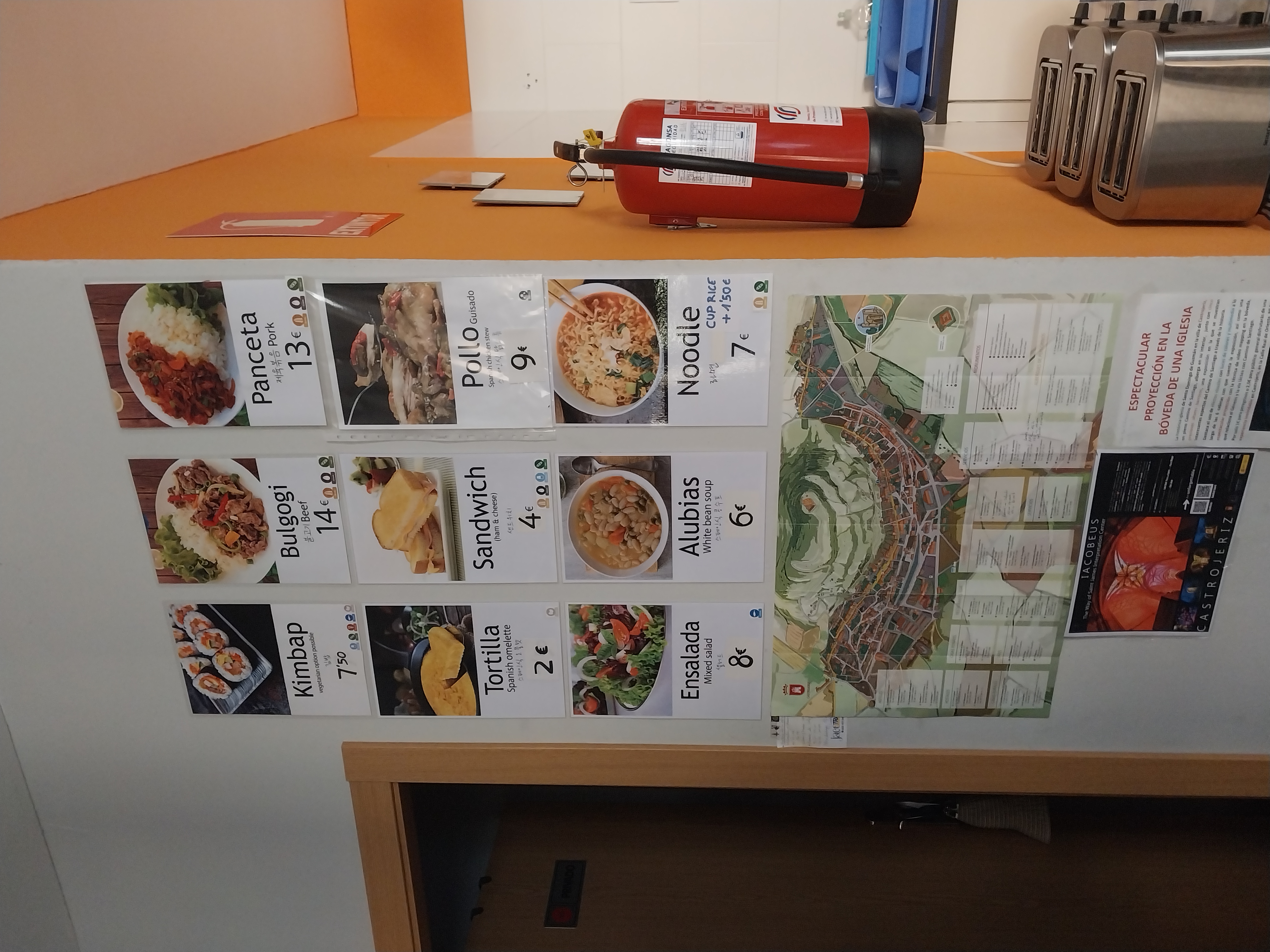 여기에서 비빔밥 외에 여러 한국음식과 스페인 음식을 디너 저녁메뉴로 판매하고 있었습니다.