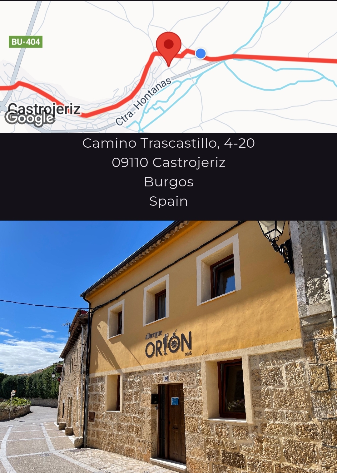 조금만 위로 올라가면 바로 Orion 알베르게 숙소 가 나와요.