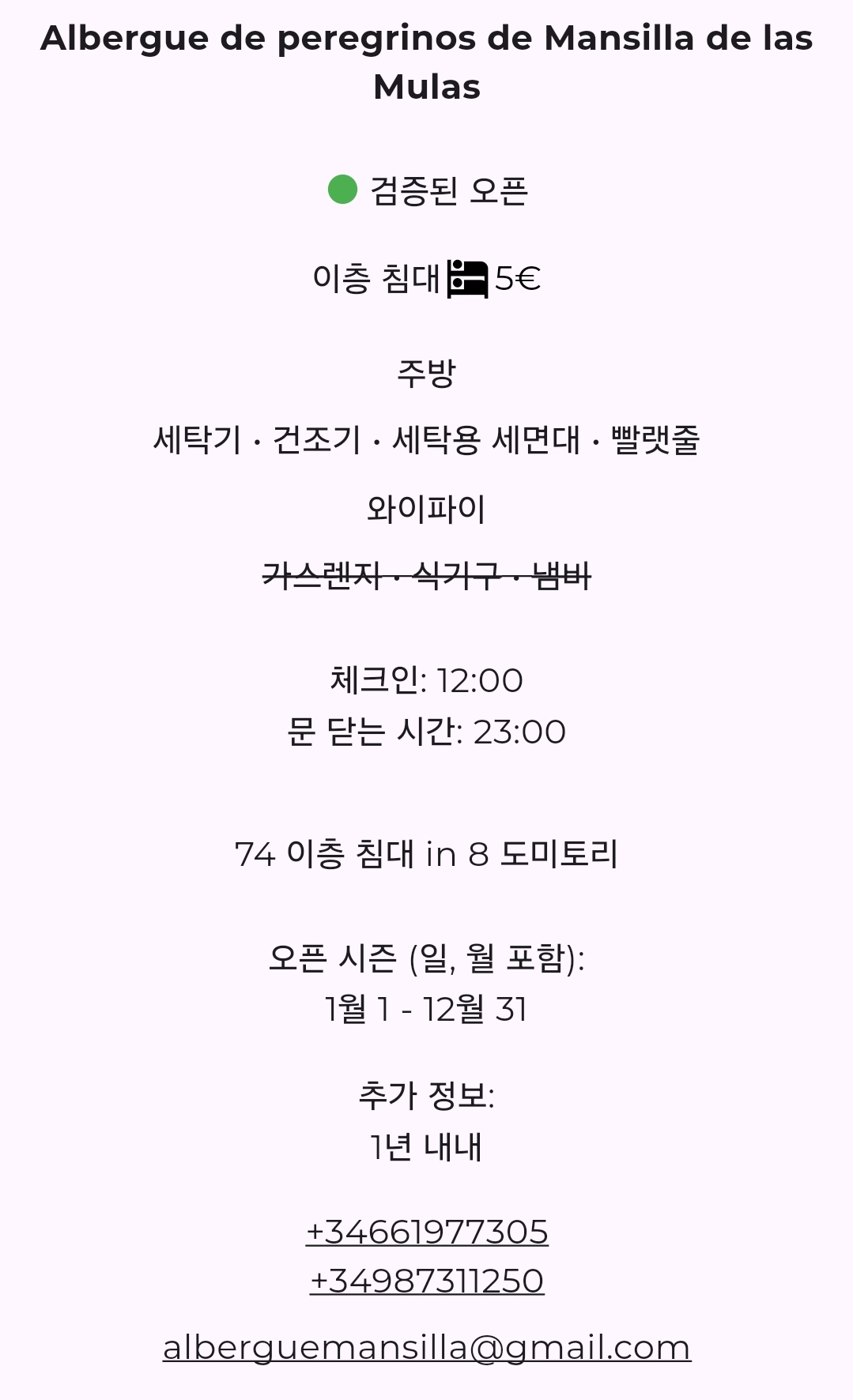 *알베르게 도미토리 숙소가격은 7유로입니다.