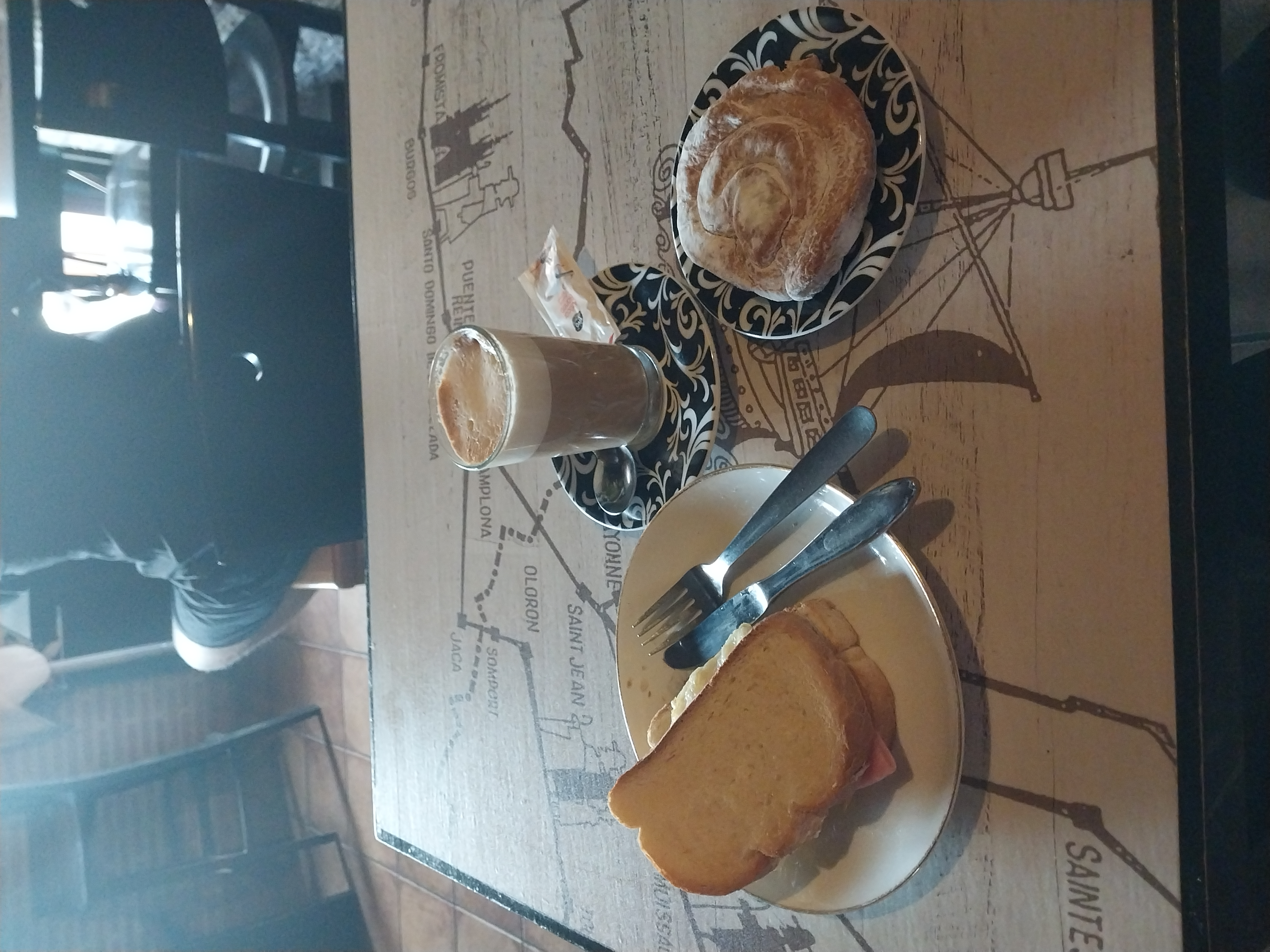 그리고 드디어 12.5km를 힘들게 걸어서 도착한 첫 번째 마을 Leliegos에서 따뜻한 카페콘레체 와 간식을 먹기 위해 들렀던 카페입니다.