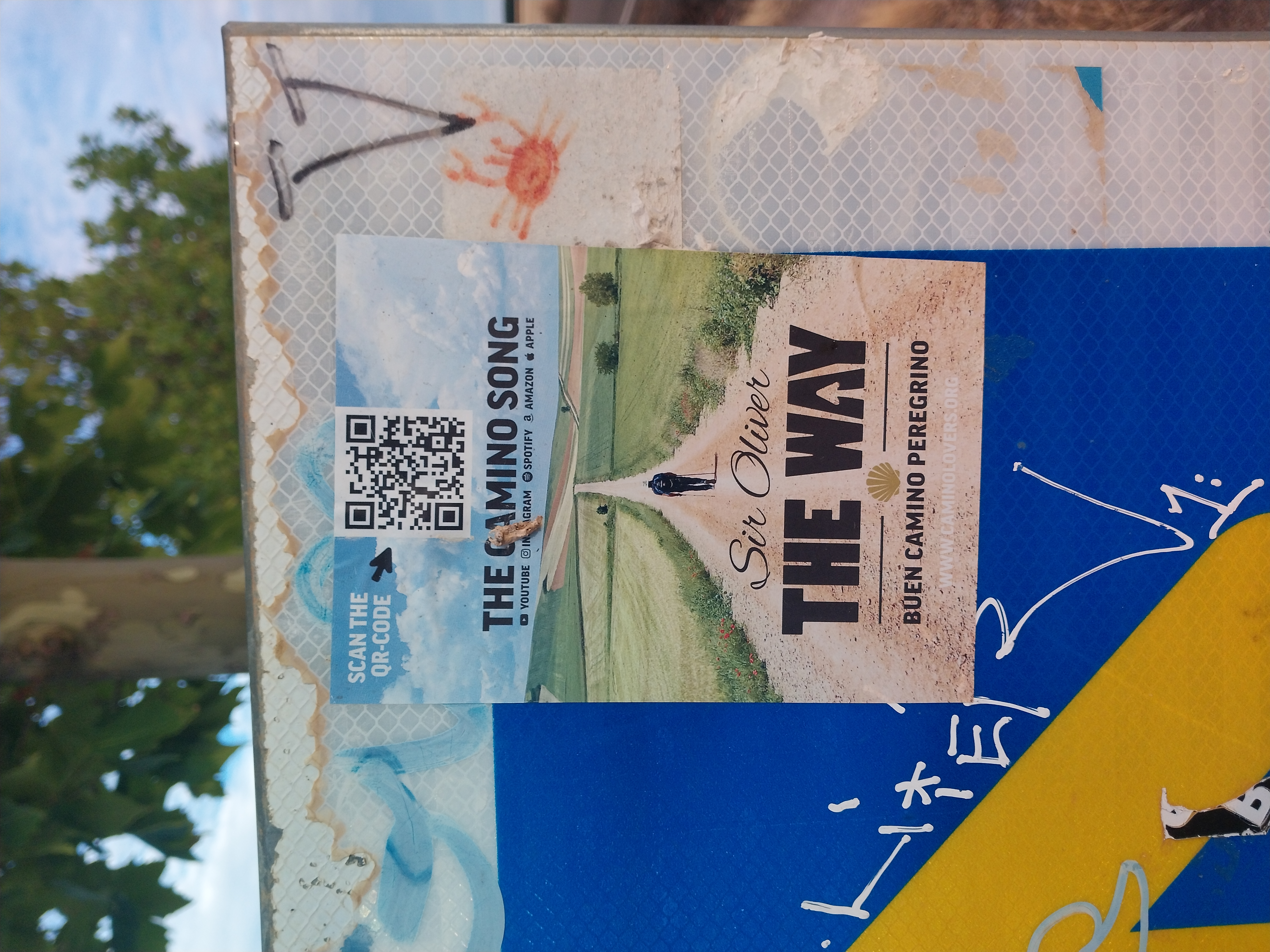 "The way"라는 산티아고 순례길 영화 홍보 스티커를 봤어요. 꼭 보고 싶은 영화입니다.