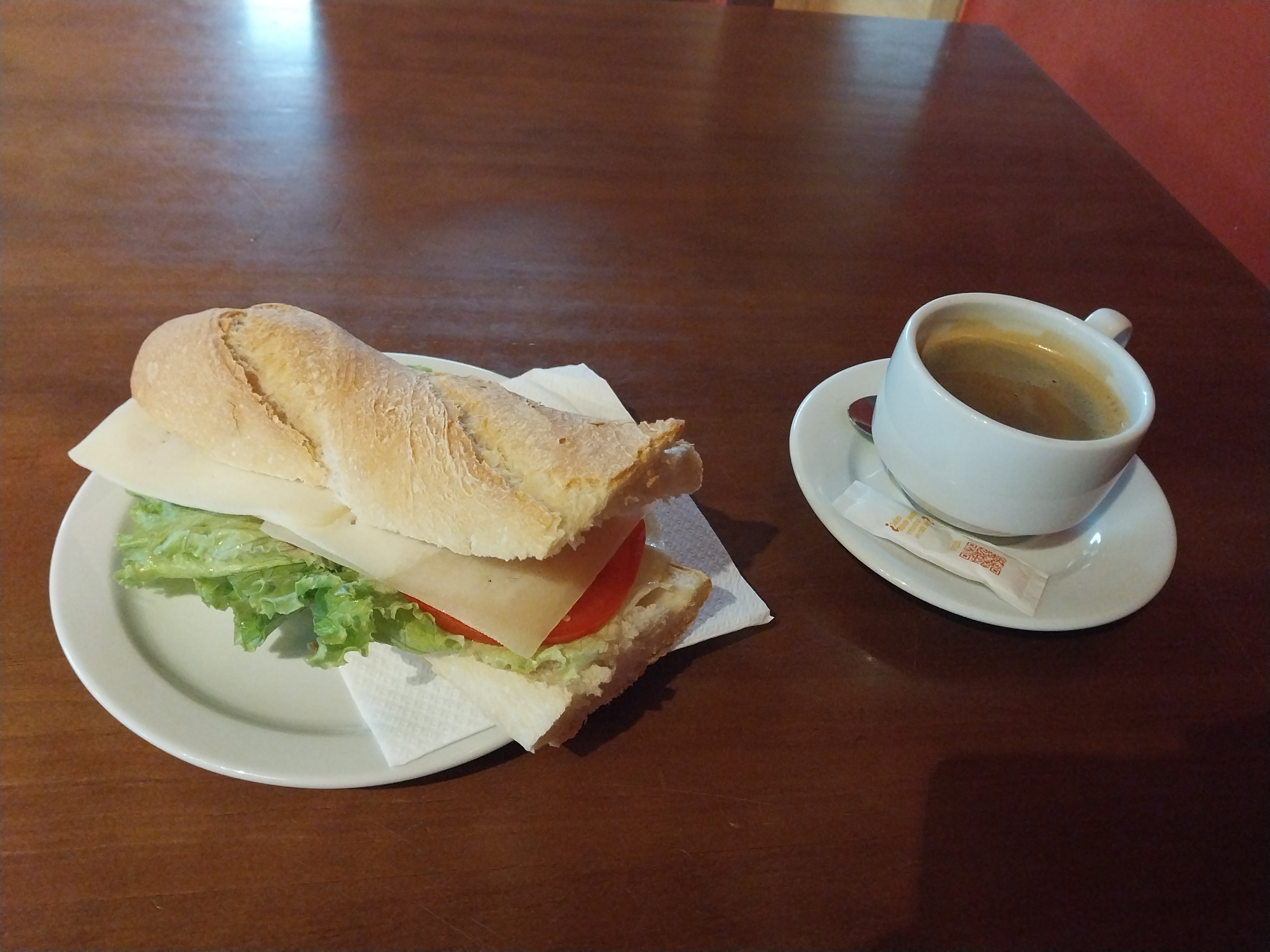 저는 아침도 제대로 안먹고 배고 파서 치즈 ,토마토,양배추 바게트 샌드위치 와 커피를 주문했어요. 가격은 6.50유로 지불했어요.