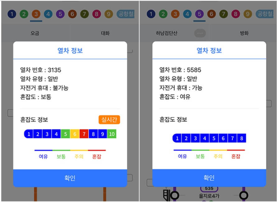 ▣ 지하철 공사공식앱 :"또 타지하철"에서 객실 혼잡도 확인