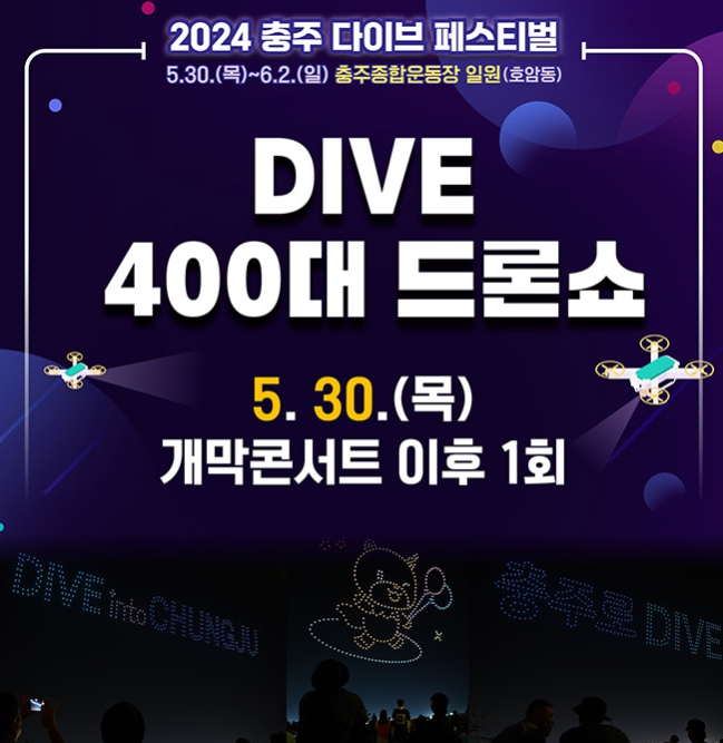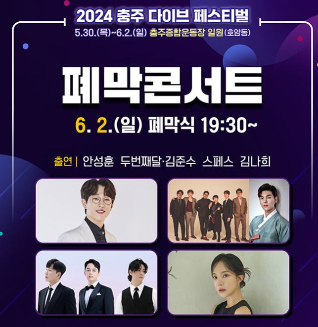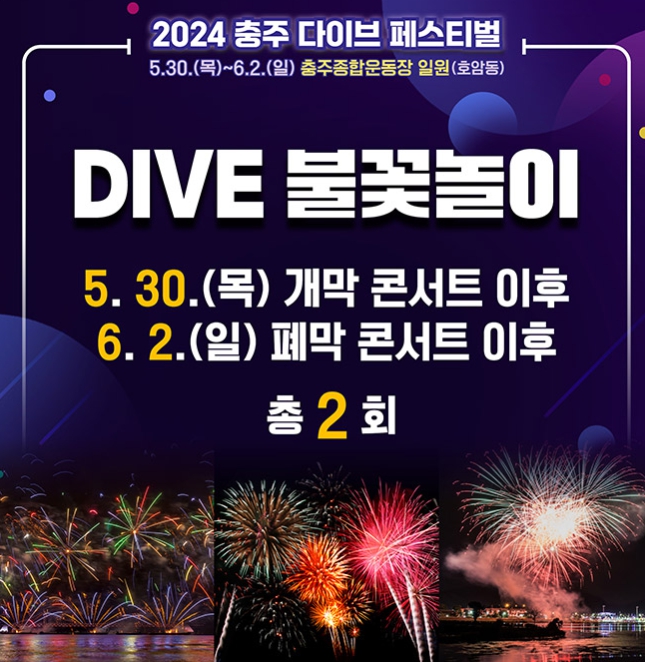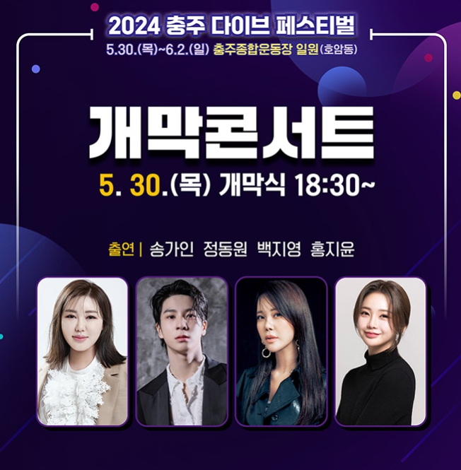 2024 충주다이브페스티벌은 '새롭게 거듭나는 축제로 행복한 충주'라는 주제로 이번달 5월 30일부터 6월 2일까지 4일간
