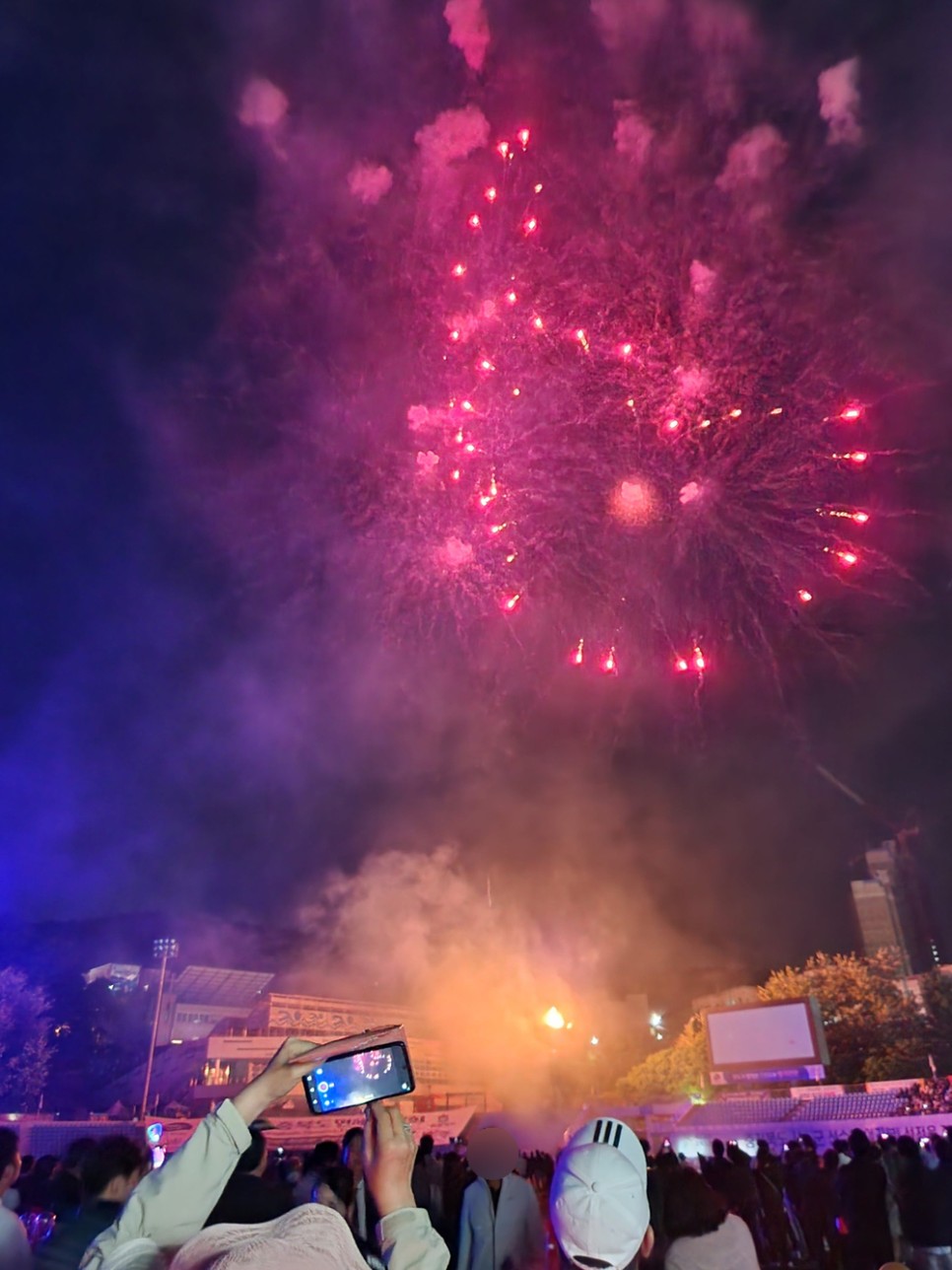 지난주 진천 도민체육대회에서 진행한 불꽃놀이 사진인데요. 정말 오랜만에 현장에서 만끽하는 불꽃놀이에 감탄을 금치 못하고 봤어요. 다시 한번 현장에서 라이브로 불꽃놀이를 보고 싶네요