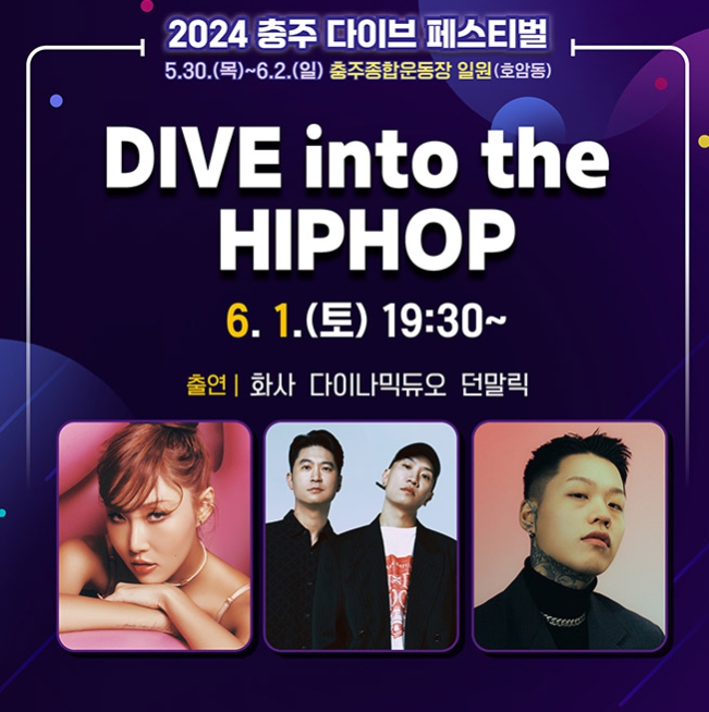 오늘은 충북지역 축제 중 공연 가수 라인업이 가장 화려한 축제가 될 것이라는 축제 소식을 소개하고자 합니다. 이번 달 30일부터 시작되는 2024 충주 다이브 페스티벌입니다