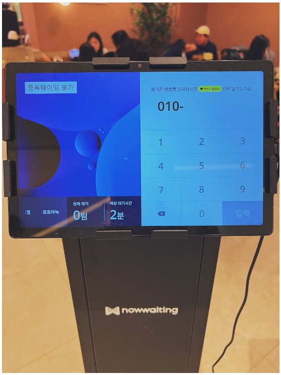 매장 앞 대기등록기에 번호를 입력하면