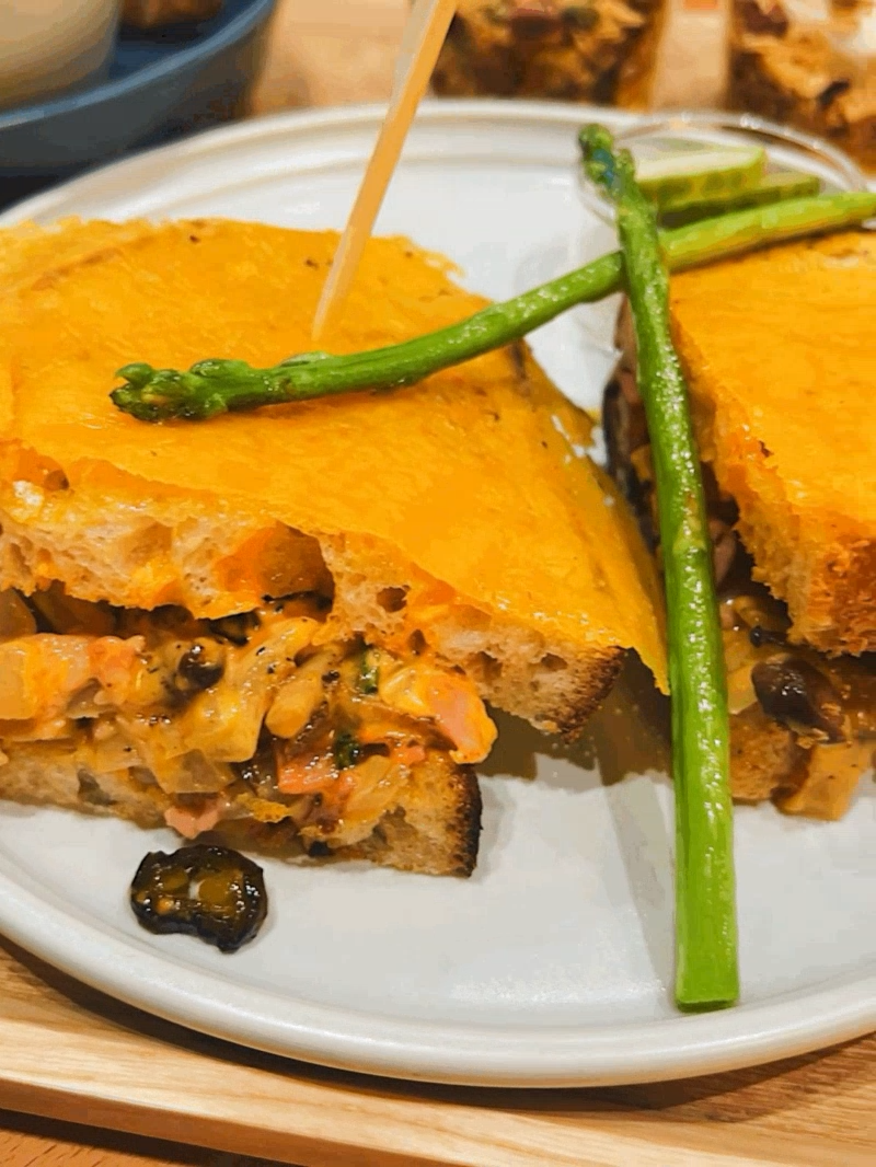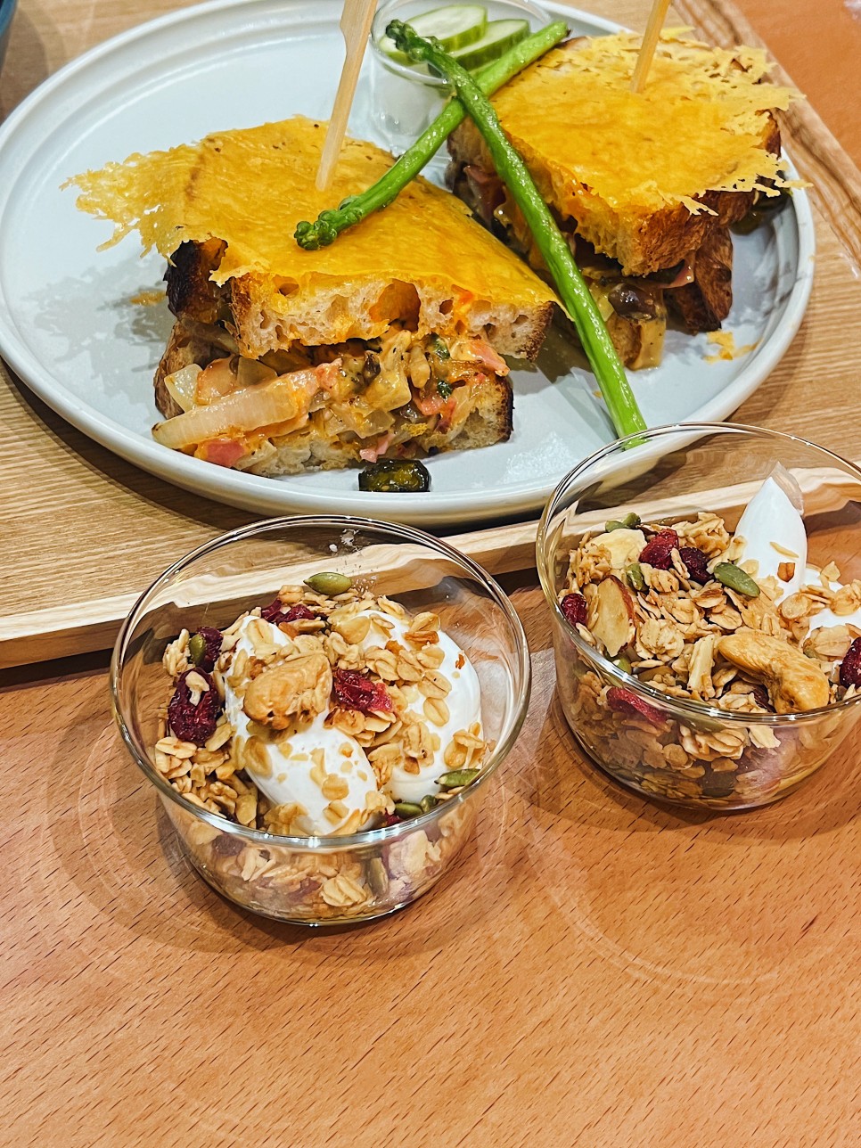 치즈 그릴드 샌드위치는 속재료가 살짝 매콤하다.