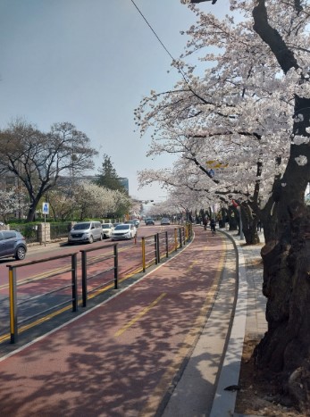 벚꽃이 보이는 코스에 벚꽃이 화려하게 피어 있으면 정말 환상적인 산책로 코스가 되는데 조금 아쉽습니다.