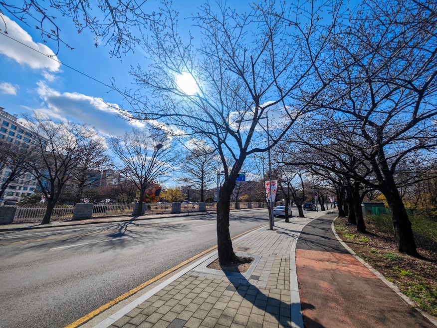 산책로 안쪽으로 이동하다 보면 그래도 서둘러 피어 있는 벚꽃이 있지 않을까 하는 기대를 가지며 멋진 길을 따라 걸어가고 있는데 지금은 여의서로의 차량들이 많이 다니지만 본격적인 축제가 되면은 교통 통제를 하기 때문에 제대로 된 벚꽃 구경을 편안하게 할 수 있는 장소입니다.
