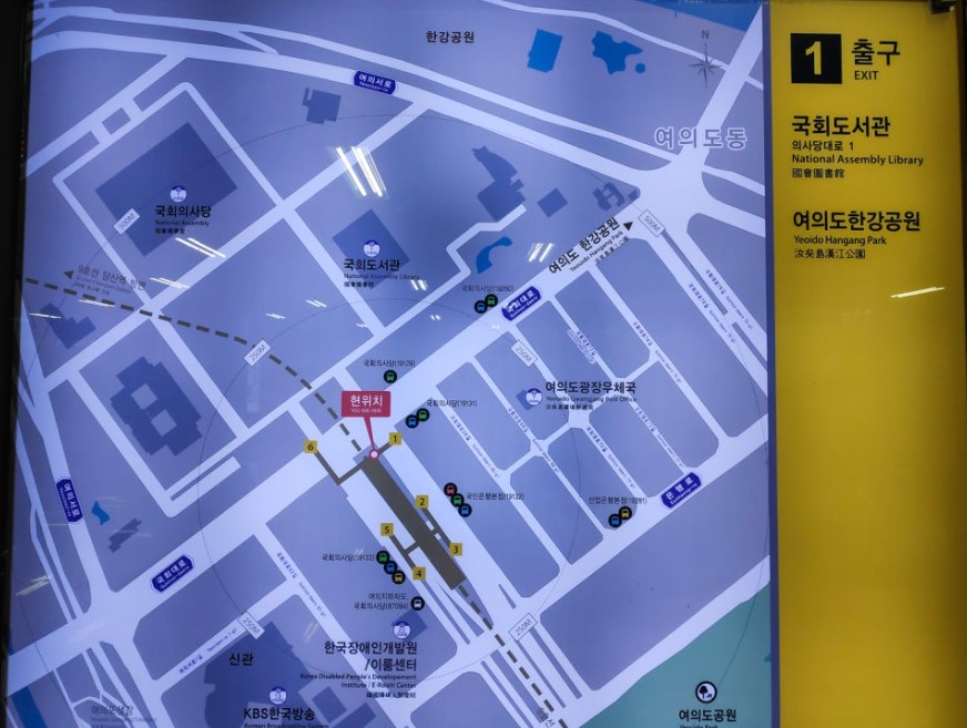 저는 대중교통을 이용해서 찾아갔기 때문에 윤중로 벚꽃길을 방문하려고 지하철 9호선 국회의사당역 1번 출구를 통해서 국회 방향으로 나왔습니다. 오전에는 비가 내려서 걱정했는데 오후가 되면서 구름도 걷히고 멋진 파란 하늘을 만나 볼 수 있었습니다.