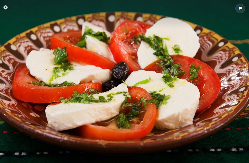 토마토, 모차렐라 치즈를 얇게 저며서 차례대로 얹은 다음 그 위에 바질을 뿌리고, 올리브 오일이나 발사믹 등으로 마무리를 하면 됩니다.