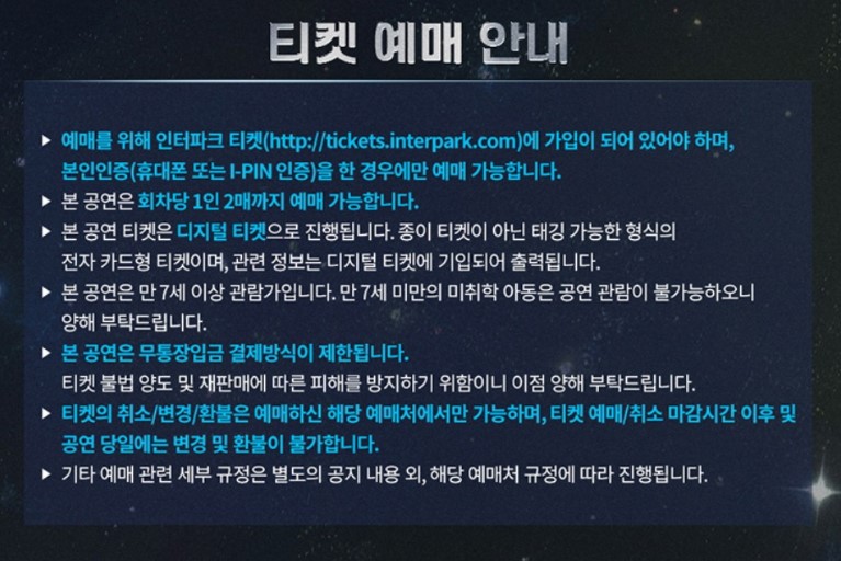 예매방법은 인터파크를 통해 본인인증 후 회차당 1인 2매까지 가능해요~~