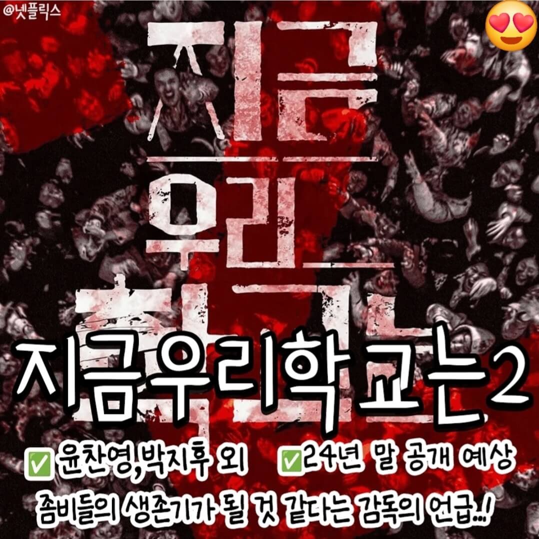 이제 지금 우리 학교는 좀비 바이러스가 시작된 학교에 고립되어 구조를 기다리던 학생들이 살아남기 위해 손을 맞잡고 싸우는 내용의 넷플릭스 시리즈입니다.
