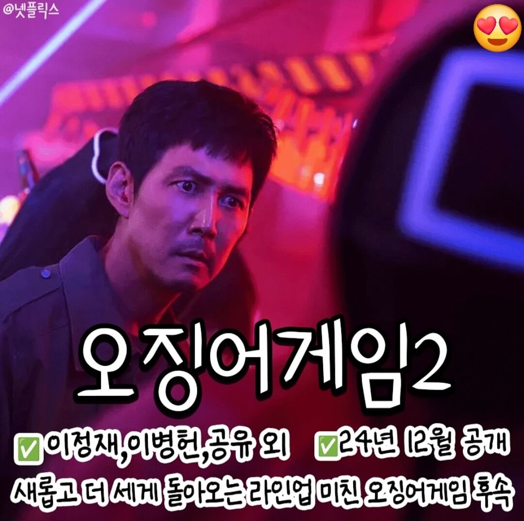 2024년 올해 제작 또는 방영예정인 넷플릭스 영화, 드라마, 예능프로에서 대박 인기리에 상영되었던 오징어게임, 시그널, 열혈사제, 태어난 김에 세계일주, 차린 건쥐뿔도 없지만, 서울의 봄, 베테랑, 지금 우리 학교는 , 스위트홈 등 이 시즌 2에서 3으로 돌아온다.