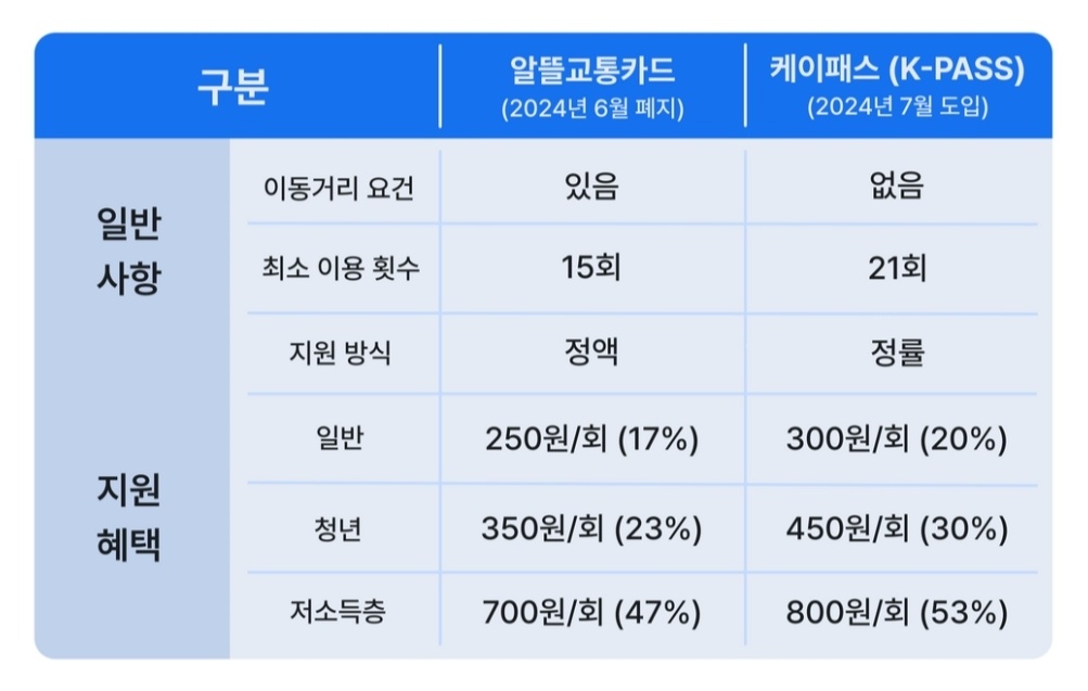 현행 알뜰 교통카드의 단점을 보완한 케이패스가 도입될 예정이라고 합니다.