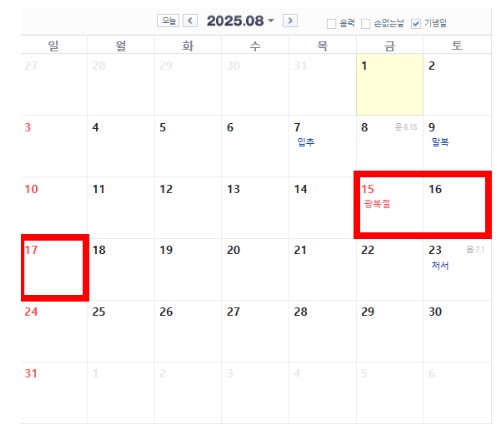 8월 15일 금 ~ 24일 일요일까지 10일간이 대박 황금연휴가 완성됩니다.