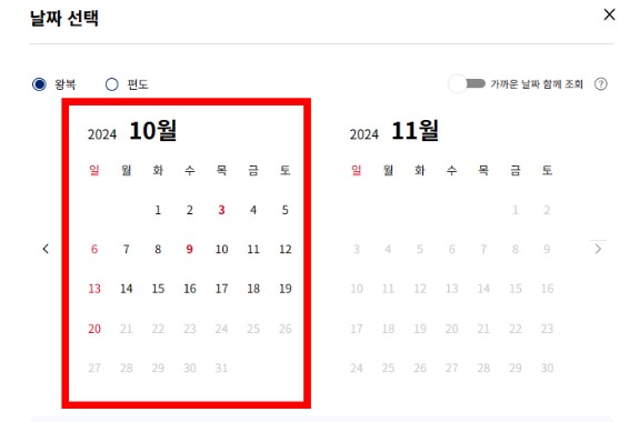 25년 10월이 되면 바로 항공권을 검색해 주도록 합니다.
