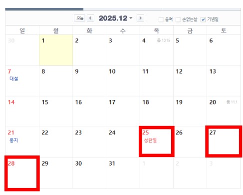 빠른 분들은 벌써부터 2025년 연휴를 체크하시더라고요. ^^
