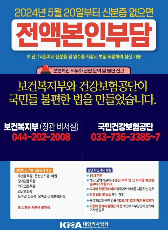 2024년 5월 20일 월요일부터 대한민국 전 국민이 국민건강 보험법 개정에 따른 신분증 확인이