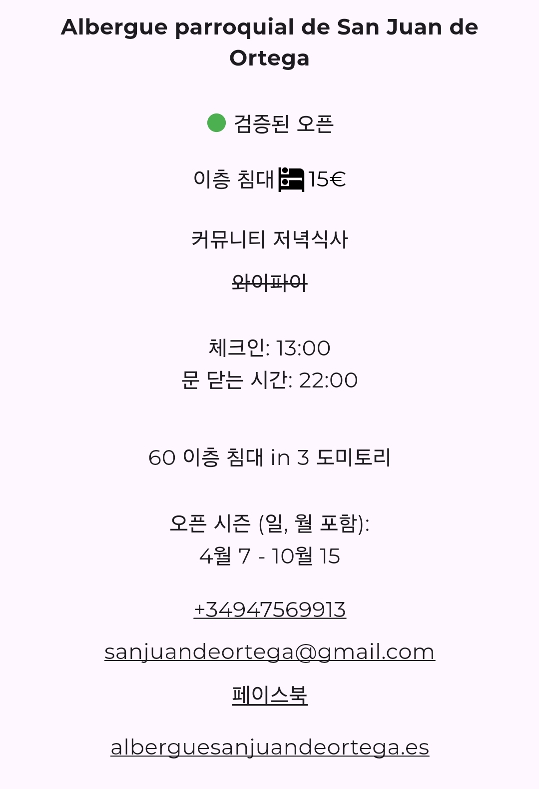 세계각지에서 온 여러 나라 사람들 순례자들과 편안하게 저녁 식사도 함께하고 길을 걸으며 재미있었던 에피소드등도 얘기하며 즐거운 시간을 보내며 새로운 순례길 정보도 교환합니다.