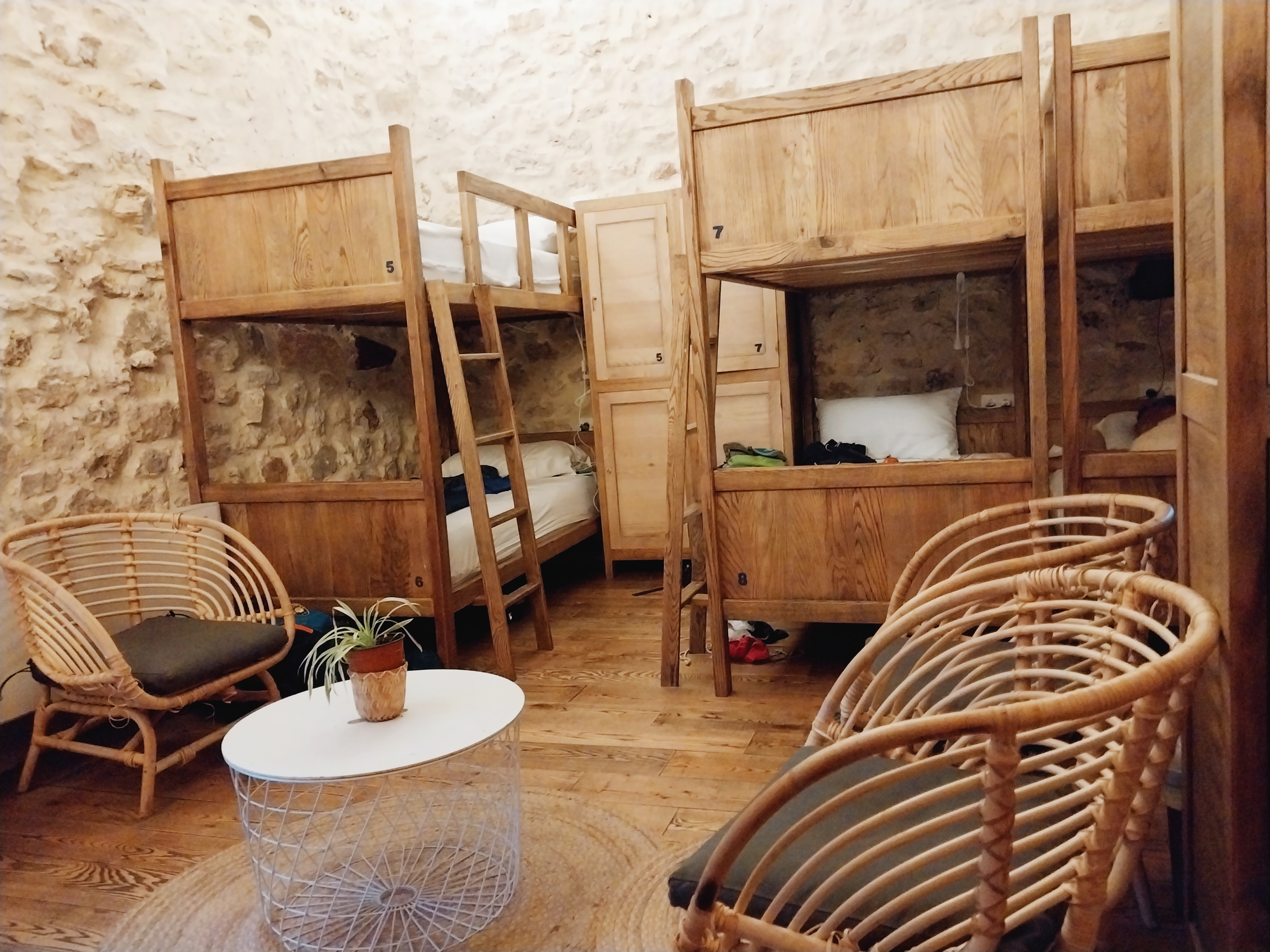 2층침대 모두 원목으로 만들어졌으며 도미토리 방안에 쉬는 공간도 만들어져 있습니다.