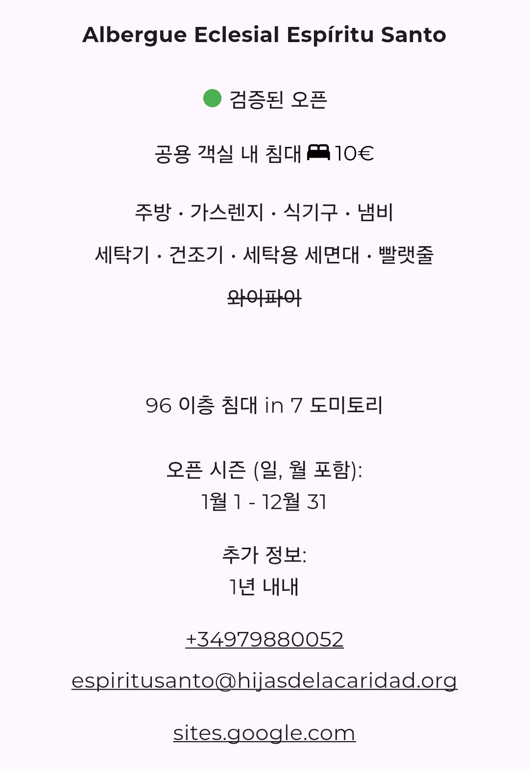 * 가격 : 10유로 (현금만) 침대커버 1유로 (현금)