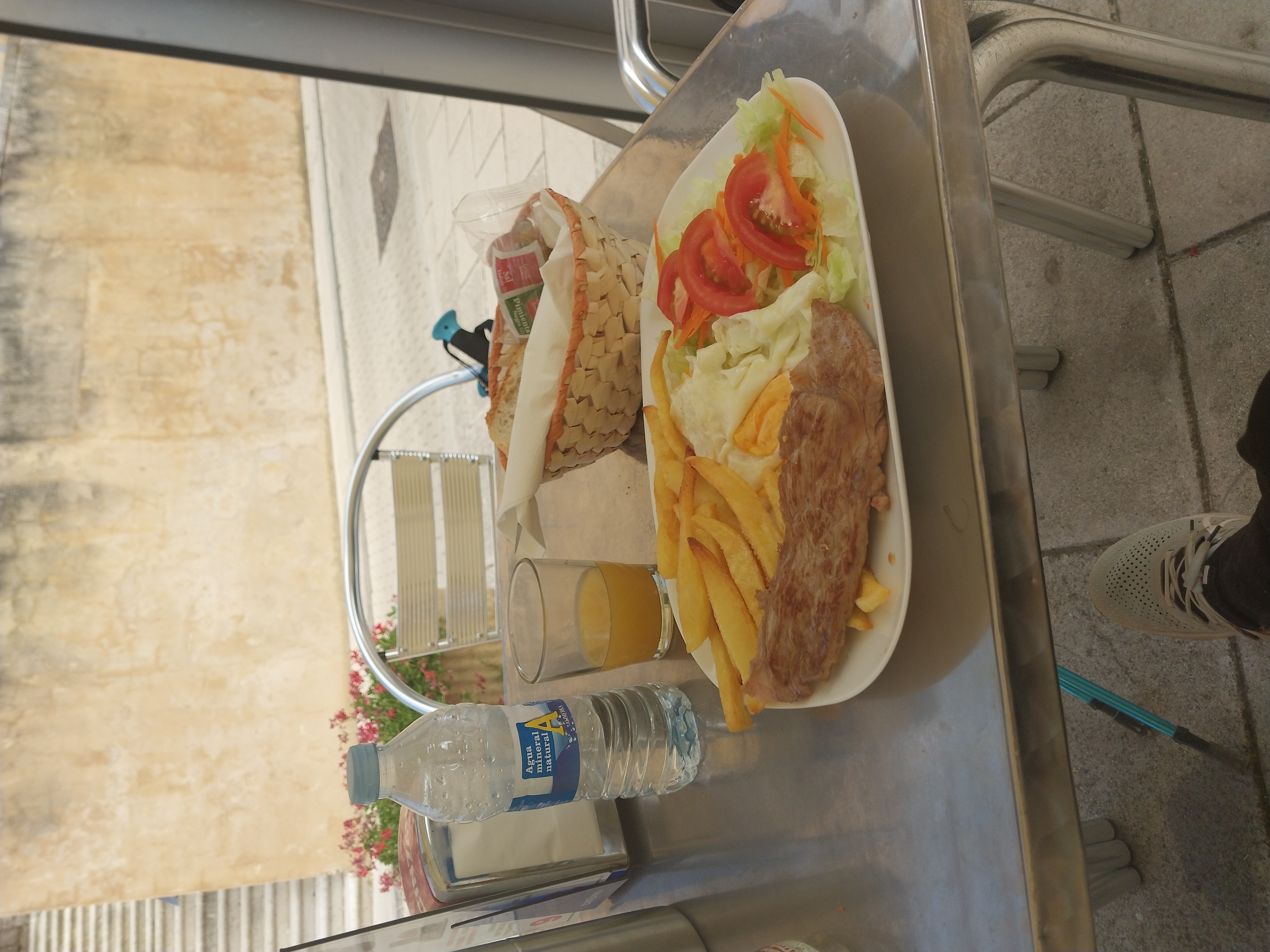 스테이크 & 감자튀김 + 오렌지주스를 주문했어요.