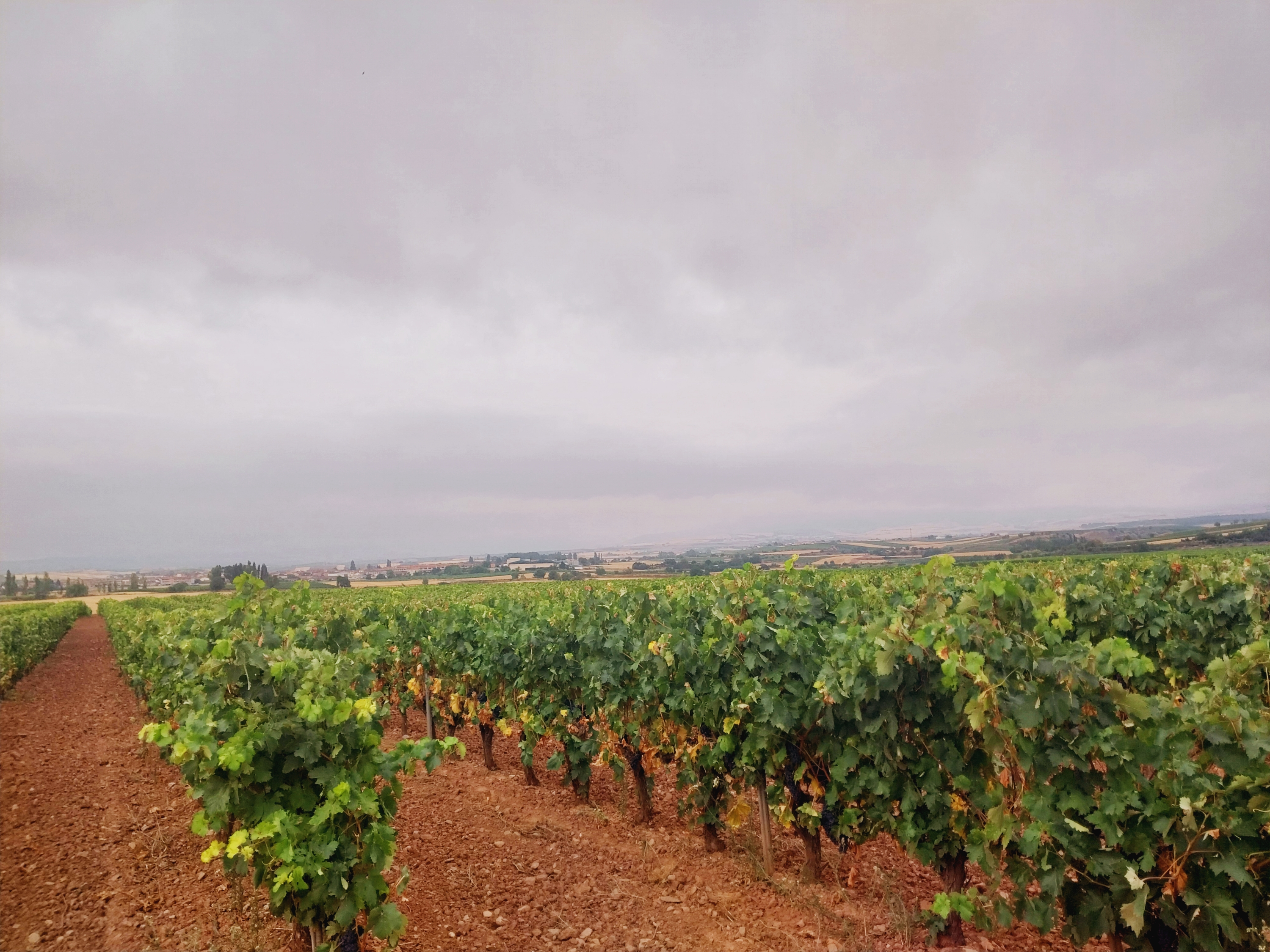 라 리오하(Rioja) 와인 산지답게 포도밭 풍경이 길을 따라 계속 이어짐.